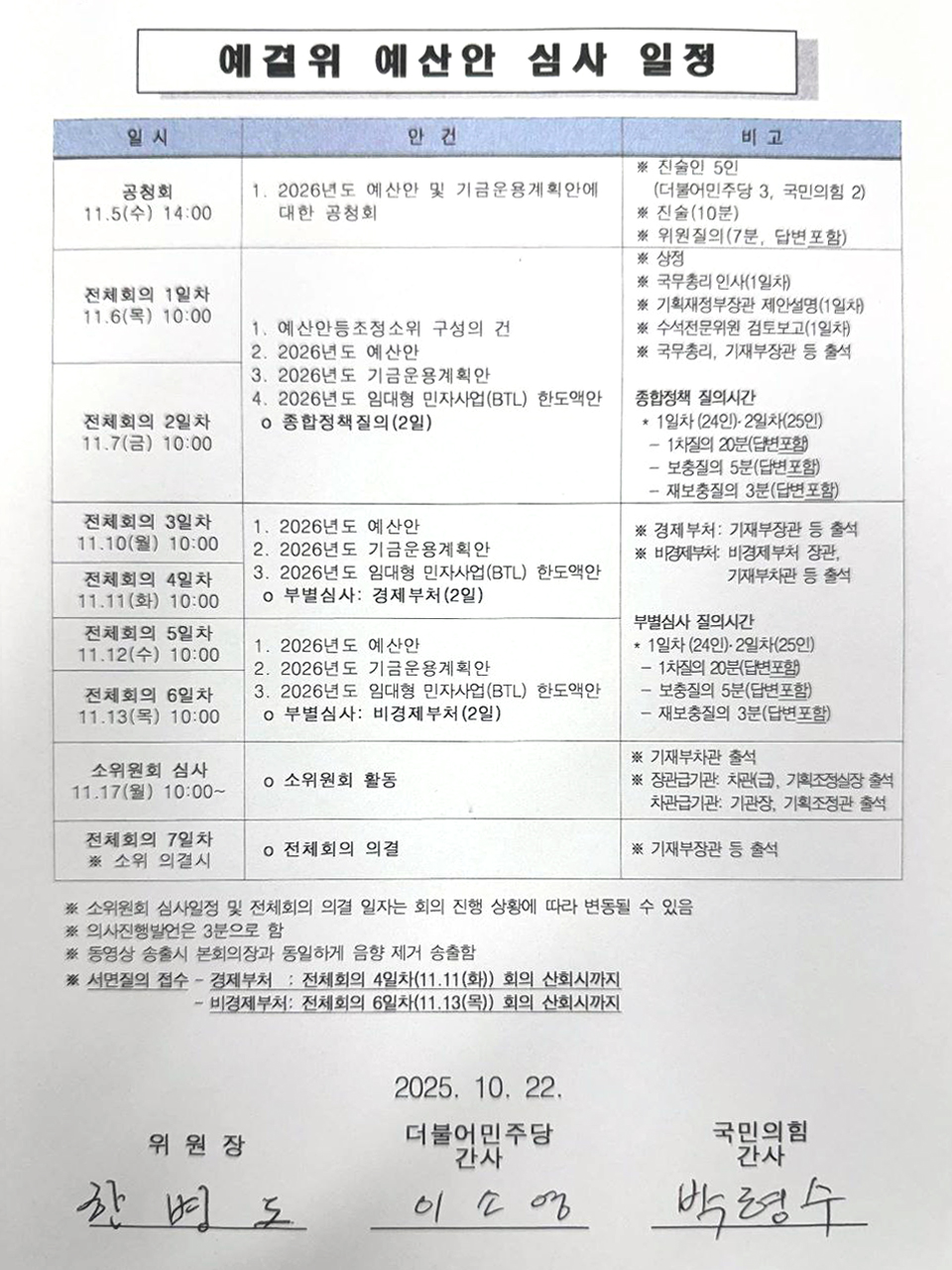 - 11.13.(목) 전체회의 6일차(비경제부처 심사) *비경제부처 서면질의 접수 기한