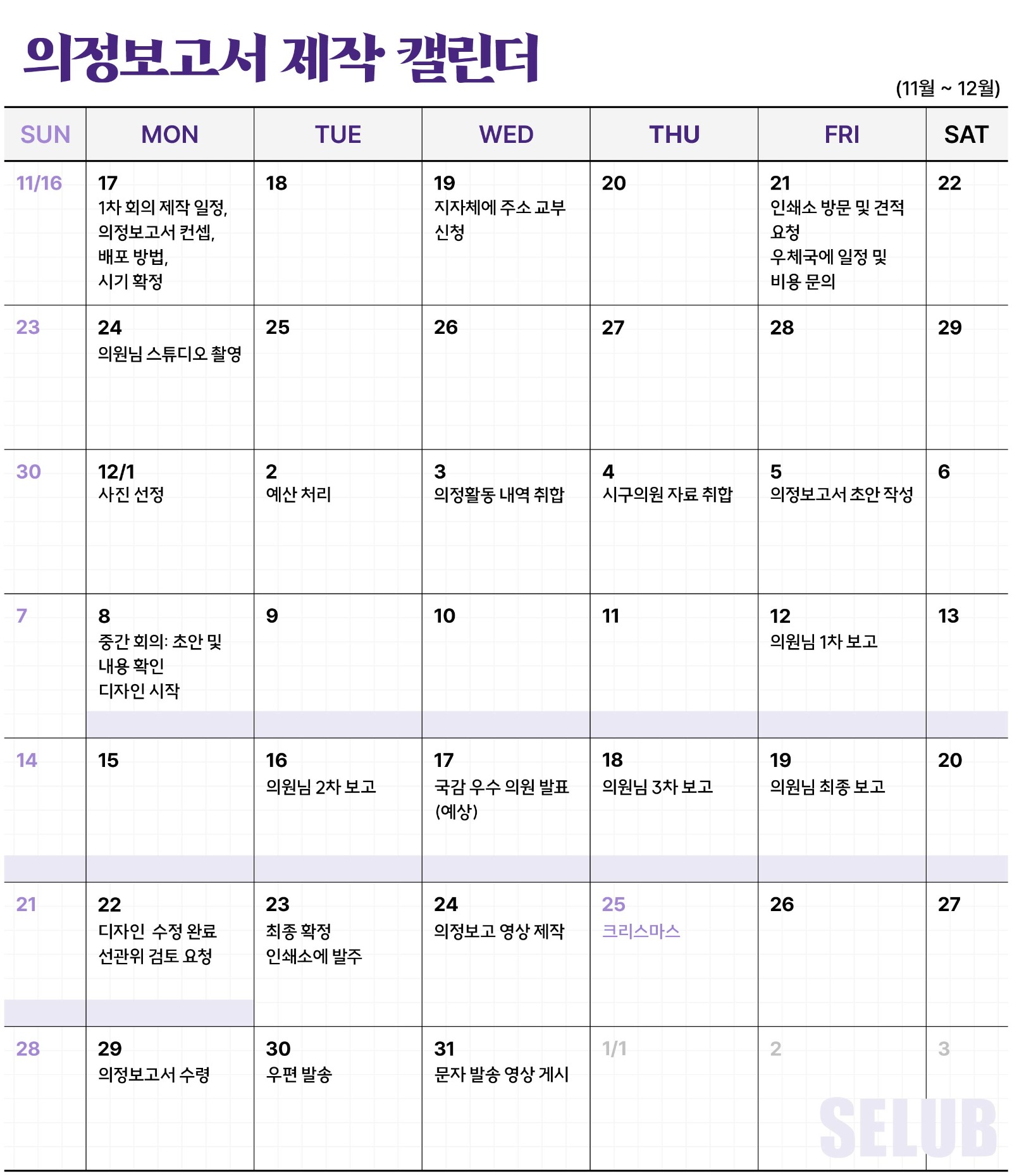 ์ด์ ์์ฐ์ ์๊ฒฐ ์์์ ๋ชซ์ผ๋ก ๋์ด๊ฐ๋๋ฐ์. ์๊ฒฐ์๊ฐ ์๋ ์์์ค์ ์ด์ ํ ํด๋ฅผ ๋ง๋ฌด๋ฆฌํ๋ฉฐ ์์ ๋ณด๊ณ ์๋ฅผ ์ ์ํด์ผ ํ ๋๊ฐ ์์ต๋๋ค. ์์ ๋ณด๊ณ ์๋ ํฐ ๋น์ฉ์ด ๋ค์ด๊ฐ๊ณ ์๋ง์ ์ ๊ถ์์๊ฒ ์ ๋ฌ์ ํด์ผ ํ๋ ํฐ ์ผ์ธ ๋งํผ ์ค์ ์์ด ์น๋ฐํ ๊ณํํ์ ์งํ๋์ด์ผ ํฉ๋๋ค. ๋๋ถ์ด ๋ด๋ ์๋ ์ง๋ฐฉ์ ๊ฑฐ๋ก ์ธํด ์์ ๋ณด๊ณ ์ ํ ๊ธฐ๊ฐ์ด ์์ด ์ฌ์ค์ ์ฌํด ๋ง์ง๋ง ์์ ๋ณด๊ณ ์๊ฐ ํ๋์ ๋ณด๋ผ ์ ์๋ ๋ง์ง๋ง ์์ ๋ณด๊ณ ์๊ฐ ๋ ๊ฒ์ ๋๋ค. ๊ทธ๋ผ SELUB์ด ์ ๊ณตํ๋ ์ ์ ์บ๋ฆฐ๋๋ฅผ ํตํด ๊ผผ๊ผผํ ์์ ๋ณด๊ณ ์๋ฅผ ์ ์ํด ๋ณด์ธ์.