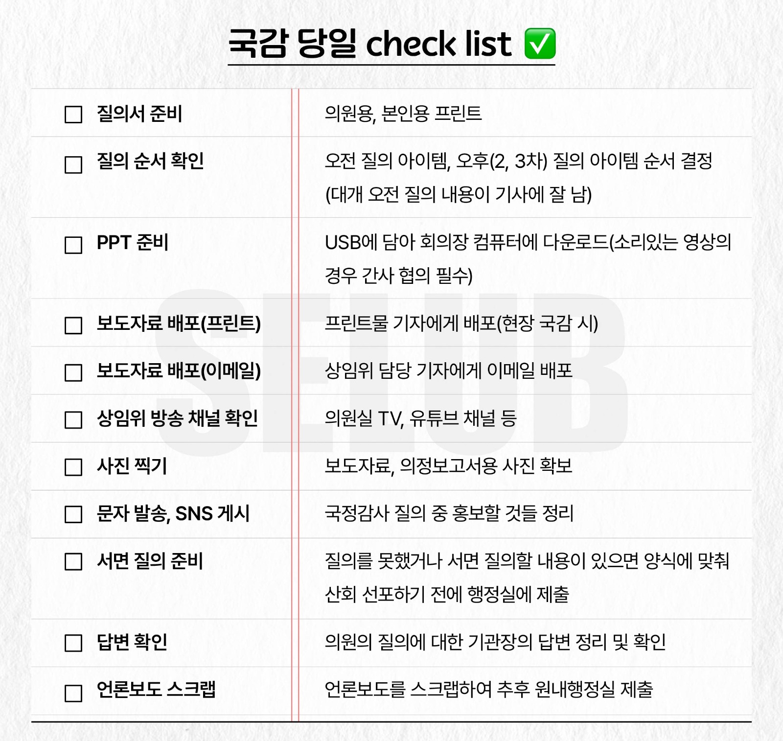 국정감사 당일 체크리스트 ✅